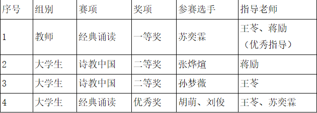 日前,由教育部、国家语委共同主办的第六届中华经典诵写讲大赛全国总决赛获奖名单正式公布。我校师生在国赛中斩获佳绩,荣获一等奖1项、二等奖2项、优秀奖1项、优秀指导奖1项。这是我校在这一领域中首次多个赛项同时闯入决赛并获得国家级奖项,实现了从“0”到“1”的国家级奖项和一等奖双突破。