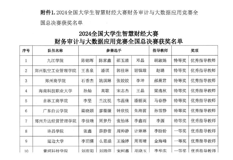 我校管理学院审计学专业陈家鑫、邵玉清、邓晶、虞璐嫣以及财务管理专业的陈铭晖同学在2024年的三大审计专业竞赛全国总决赛中取得了令人瞩目的优异成绩,连续为我校夺得三项特等奖。