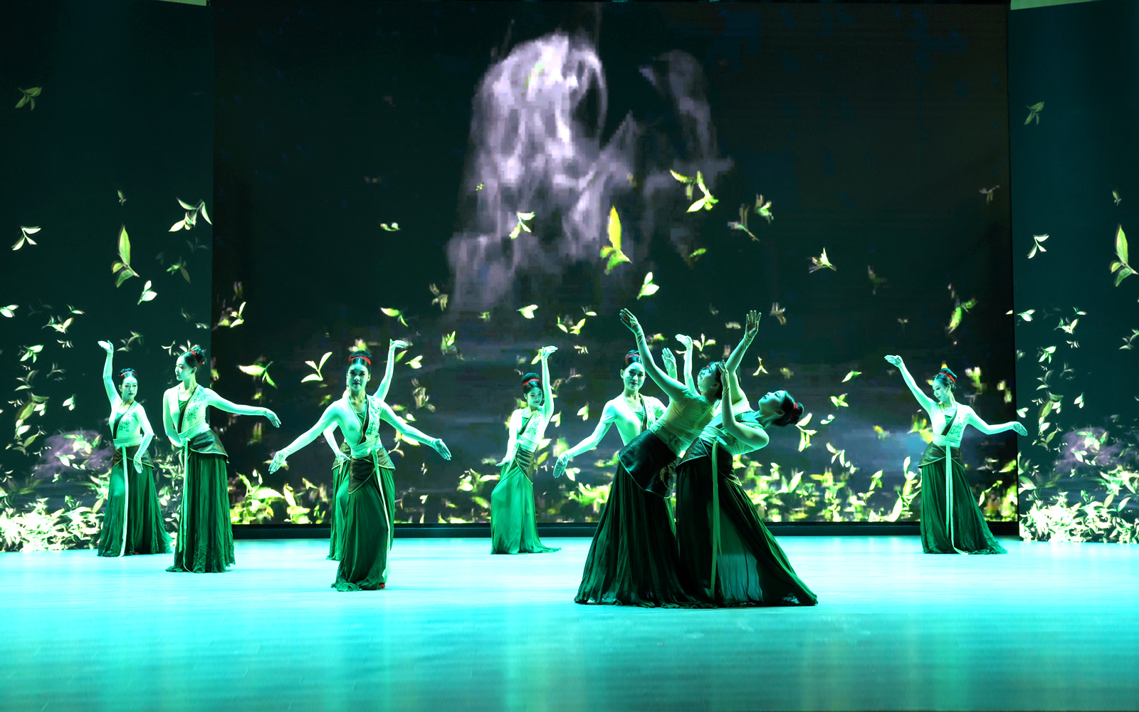 原创舞蹈作品《佳茗行》植根于赣北大地深厚的茶文化沃土,以庐山云雾茶为灵感源泉,撷取九江千年茶事中的劳动智慧与东方意蕴,以灵动舞姿为笔,勾勒茶山春色,演绎茶人匠心,颂扬人与自然和谐共生的永恒主题,向世人传递中华茶文化清雅悠远的独特魅力。让在场观众如临其境步入一方茶韵天地,看茶芽在舞步中新生,品匠心于韵律间流转,感茶香随长袖弥漫万里。这不仅是一场视觉盛宴,更是一次涤荡心灵的茶文化朝圣之旅——一叶见中国,佳茗润千秋。该作品已入选第三届中国舞蹈影像展、获批江西省文化艺术基金资助、荣获江西省大学生艺术展演舞蹈类一等奖。