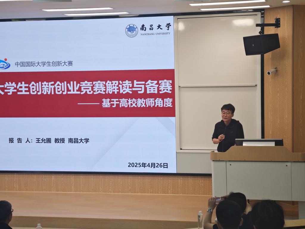 为做好全国大学生创新创业等比赛备赛工作,提升医疗领域创新人才培养质量,4月26日,我校举办“医创未来”大学生创新创业研习营活动。活动特邀结对帮扶专家南昌大学yl9193永利集团院长黄春洪、南昌大学科技处副处长王允圃担任主讲嘉宾。yl9193永利集团、医口各学院负责人及参赛团队师生参加活动。